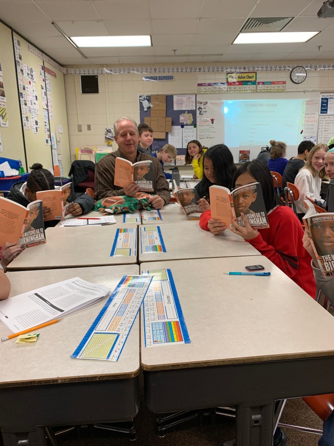 Fifth grade teacher Teacher Mr. Saline wanted to feature “The Watson’s go to Birmingham” for his class. Maureen’s Readers provided 34 books. We especially like to provide sets of books for “Book Club”.