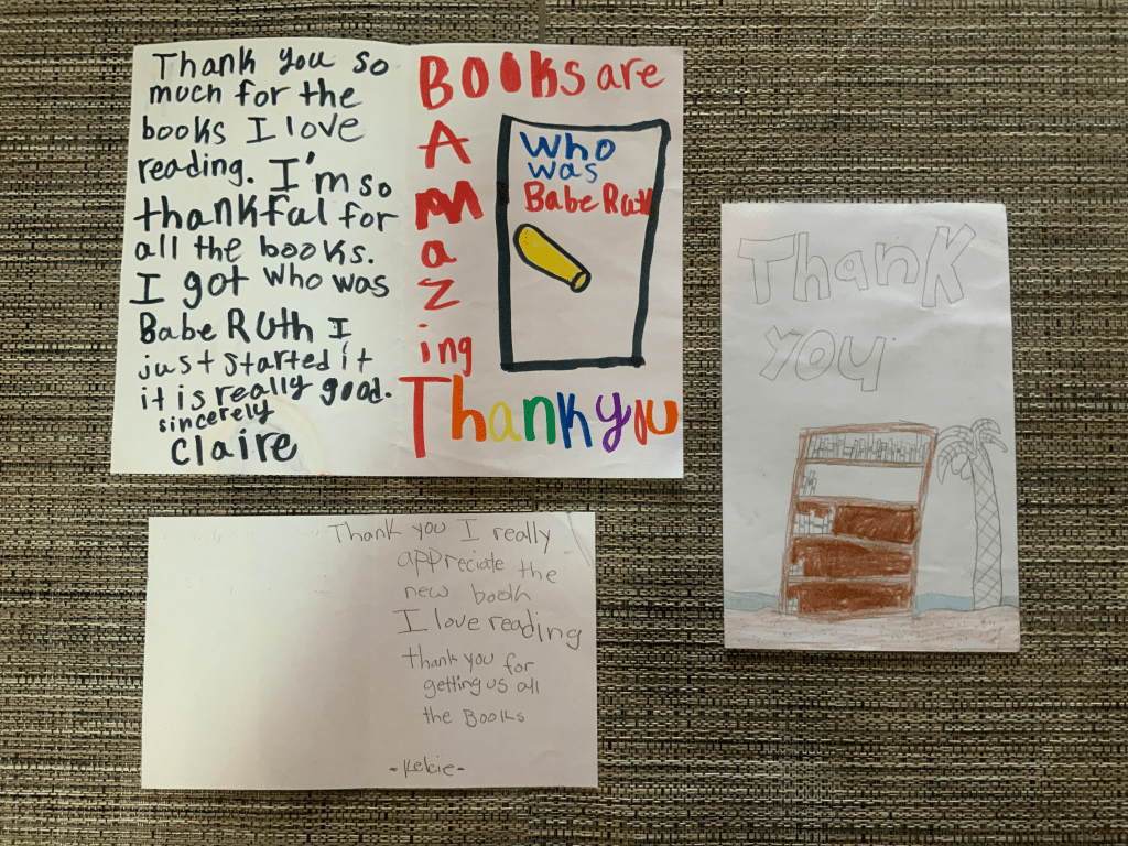 - Maureen’s Readers provides annual funds to a school to update their library inventory.